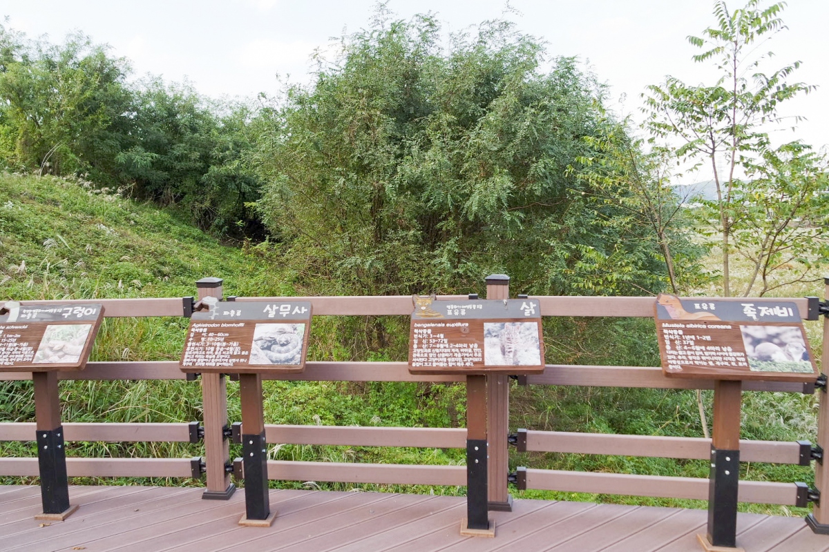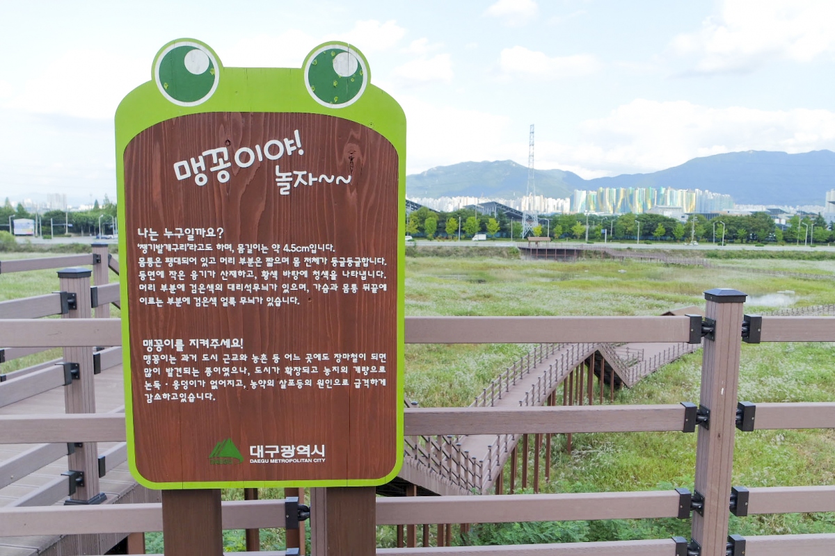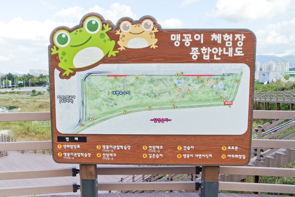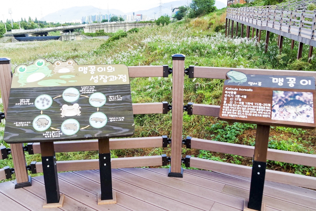 이런 맹꽁이에 대한 다양한 설명과 함께 맹꽁이관찰학습장, 전망테크, 건습지, 포토존, 생태탐방로가 마련되어 있어 다양한 체험이 가능하다.