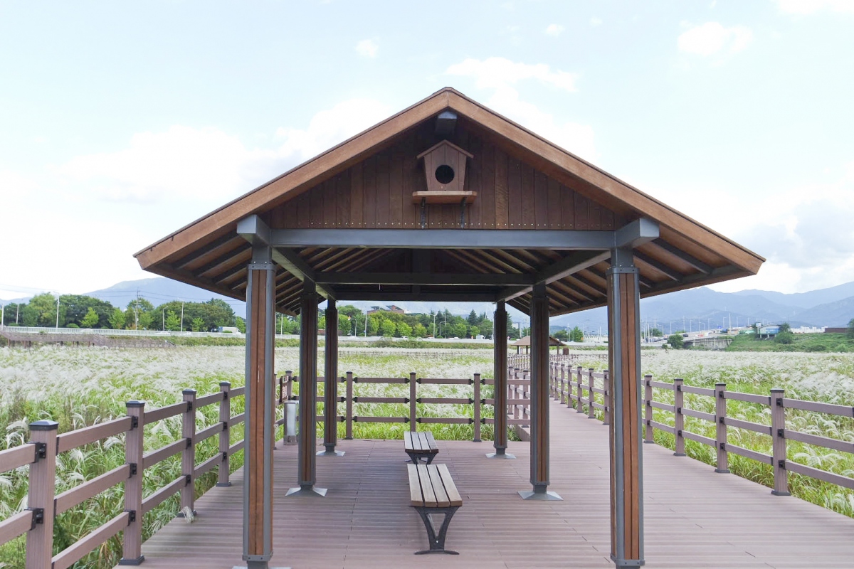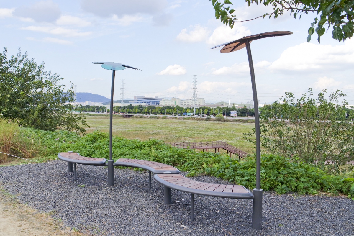 강둑을 타고 달성습지와 금호강을 달리다 보면 곳곳에 잠시 쉬어 갈 수 있는 정자도 있고, 벤치도 있고 사진 찍기 좋은 포토 존도 마련되어 있다.