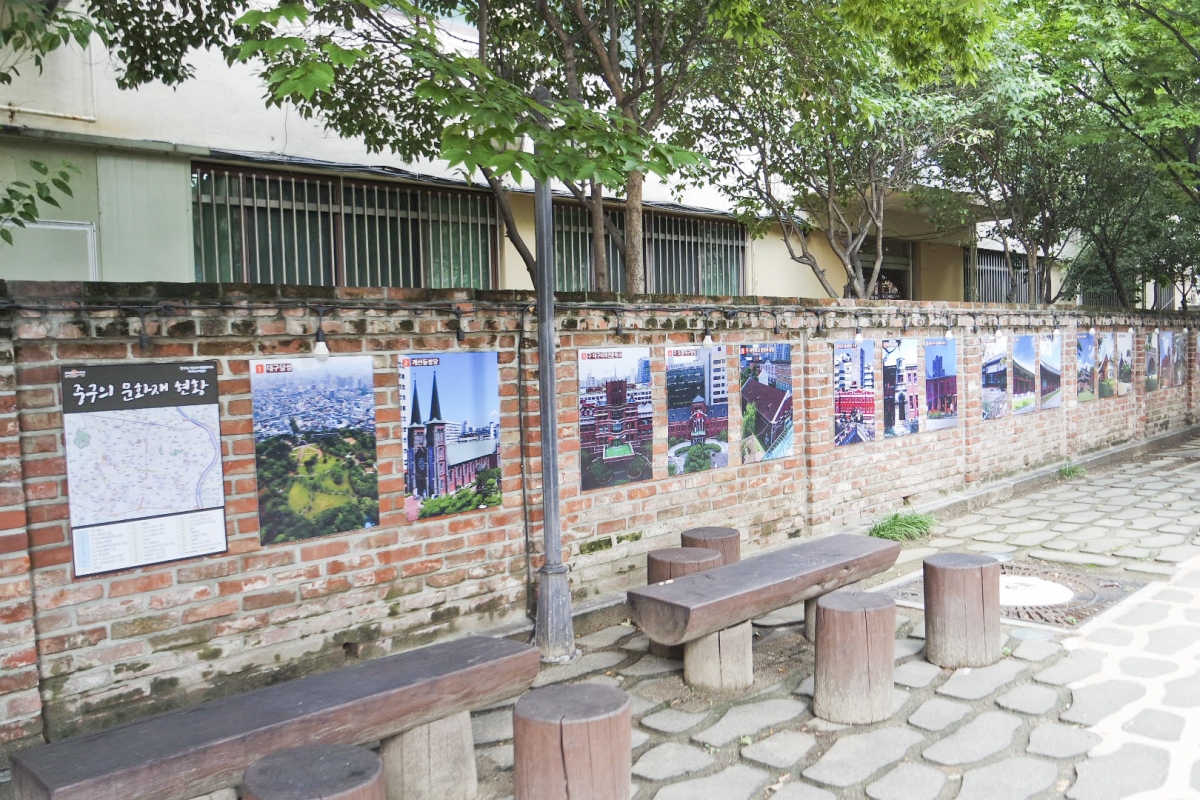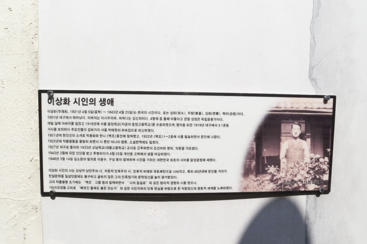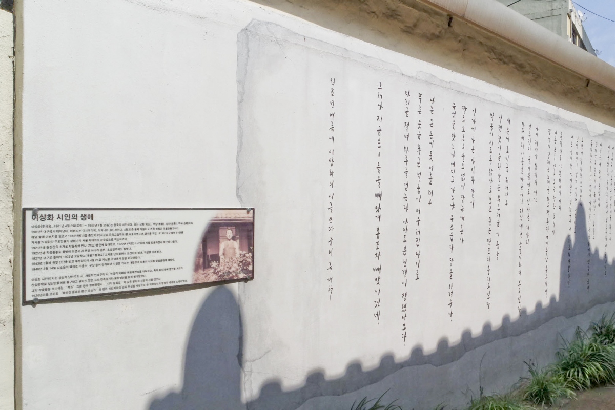 계산예가 주변으로는 이상화 선생의 아름다운 시와 함께 대구 중구의 위치한 문화재의 소개가 담벼락에 사진과 함께 소개하고 있는 모습도 볼 수 있다.