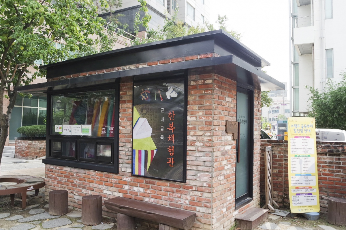 근대화문화체험관 계산예가에서 영상관에 들어서기 전 먼저 꽃분홍색 한복체험관을 볼 수 있다.