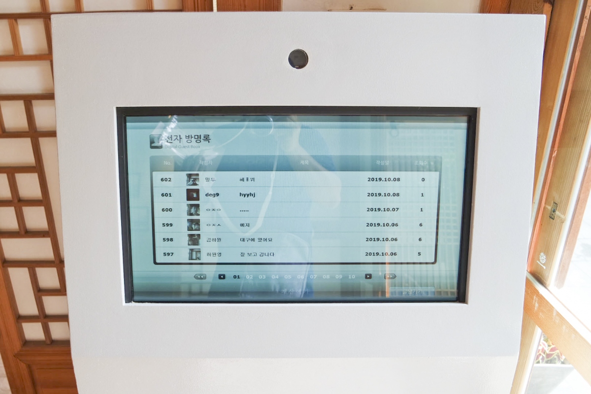 전시관 입구에는 터치스크린이 설치 되어 있는 방명록이 눈에 띈다.