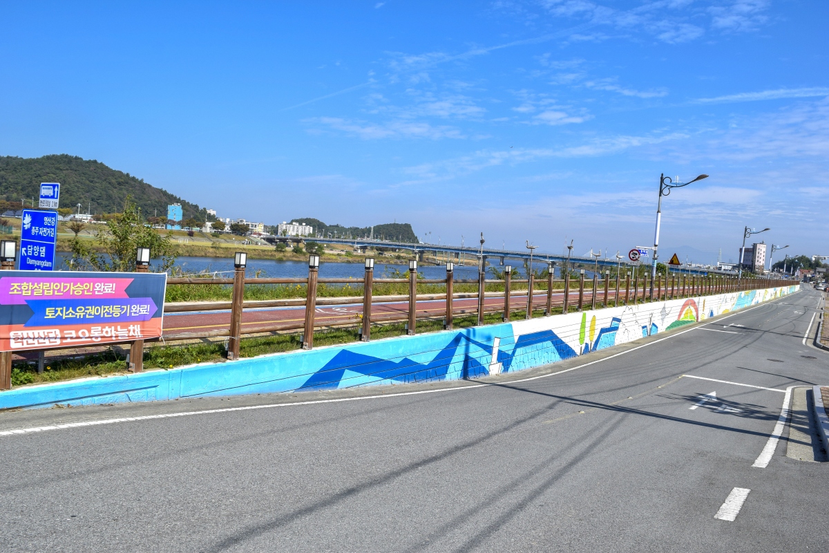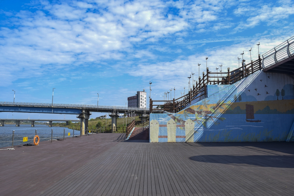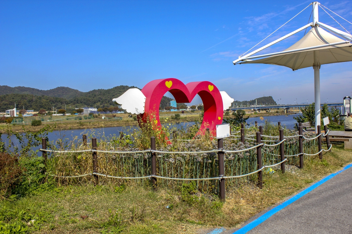 산책로 근처로 체육시설과 포토 존도 군데군데 마련되어 있기 때문에 강변을 따라 걸으며 유유자적 한적하고 여유로운 시간을 보낼 수 있다.