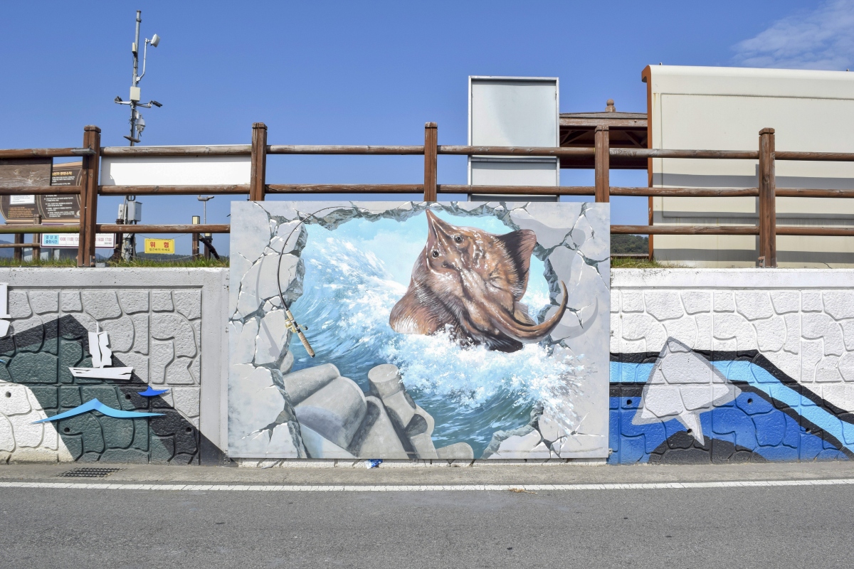 벽면에는 다양한 트릭아트 포토 존이 마련되어 있으며, 홍어의 거리인 만큼 트릭아트 주인공으로 홍어도 빠지지 않는다.