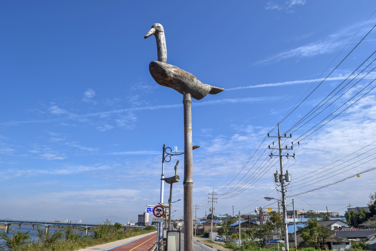 산책로 중간에는 예쁘게 만들어 놓은 솟대들도 볼 수 있고 하트 모양으로 만들어 놓은 포토 존도 설치되어 있어 사진으로 영산포의 추억을 남길 수 있다.
