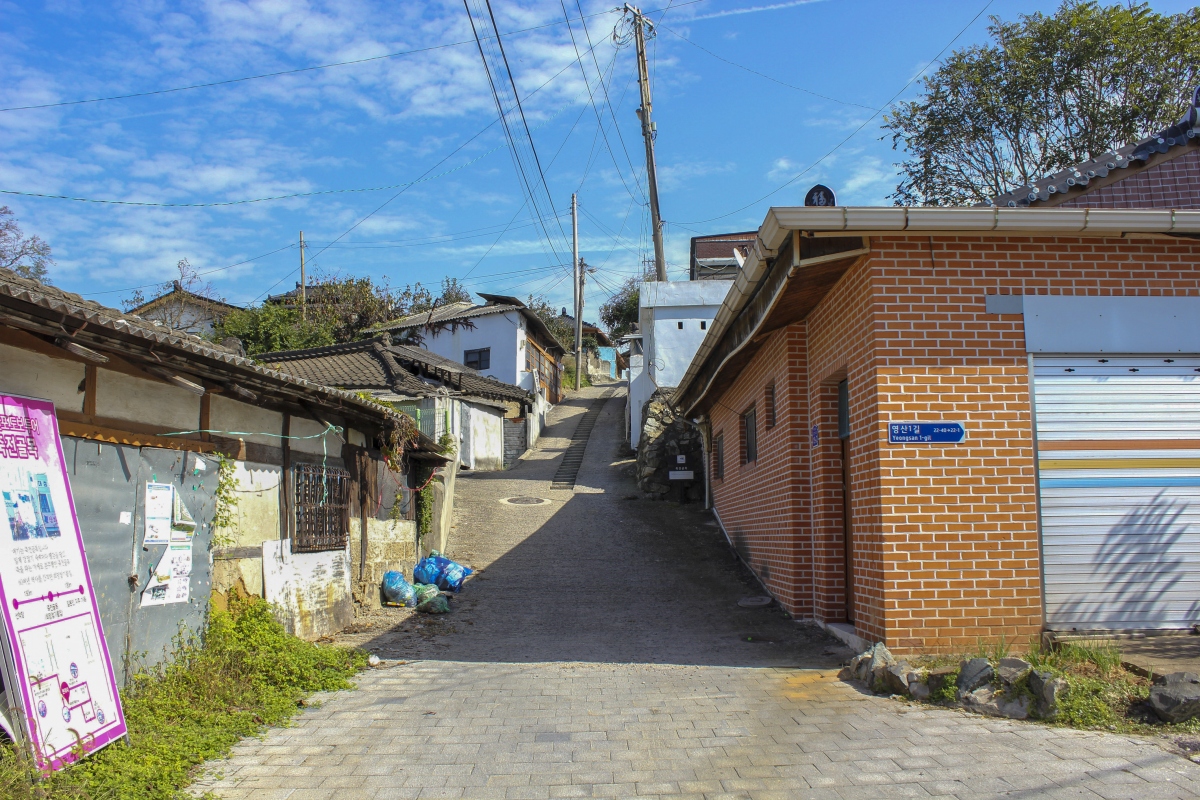 걷다 보면, 두 사람이 마주치면 어깨를 돌려 비켜야 할 만큼 좁은 골목길도 있고 나무전신주와 녹슨 창고 문에서 세월의 흔적을 고스란히 느낄 수 있다.