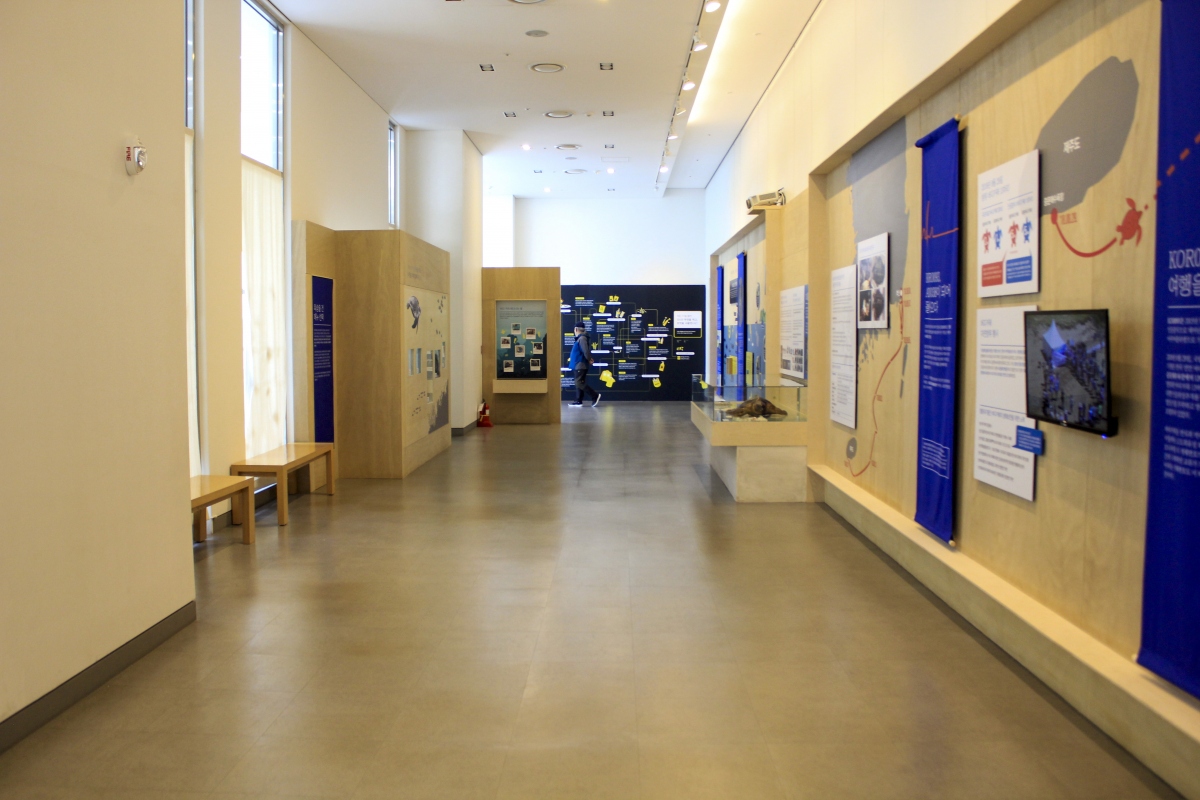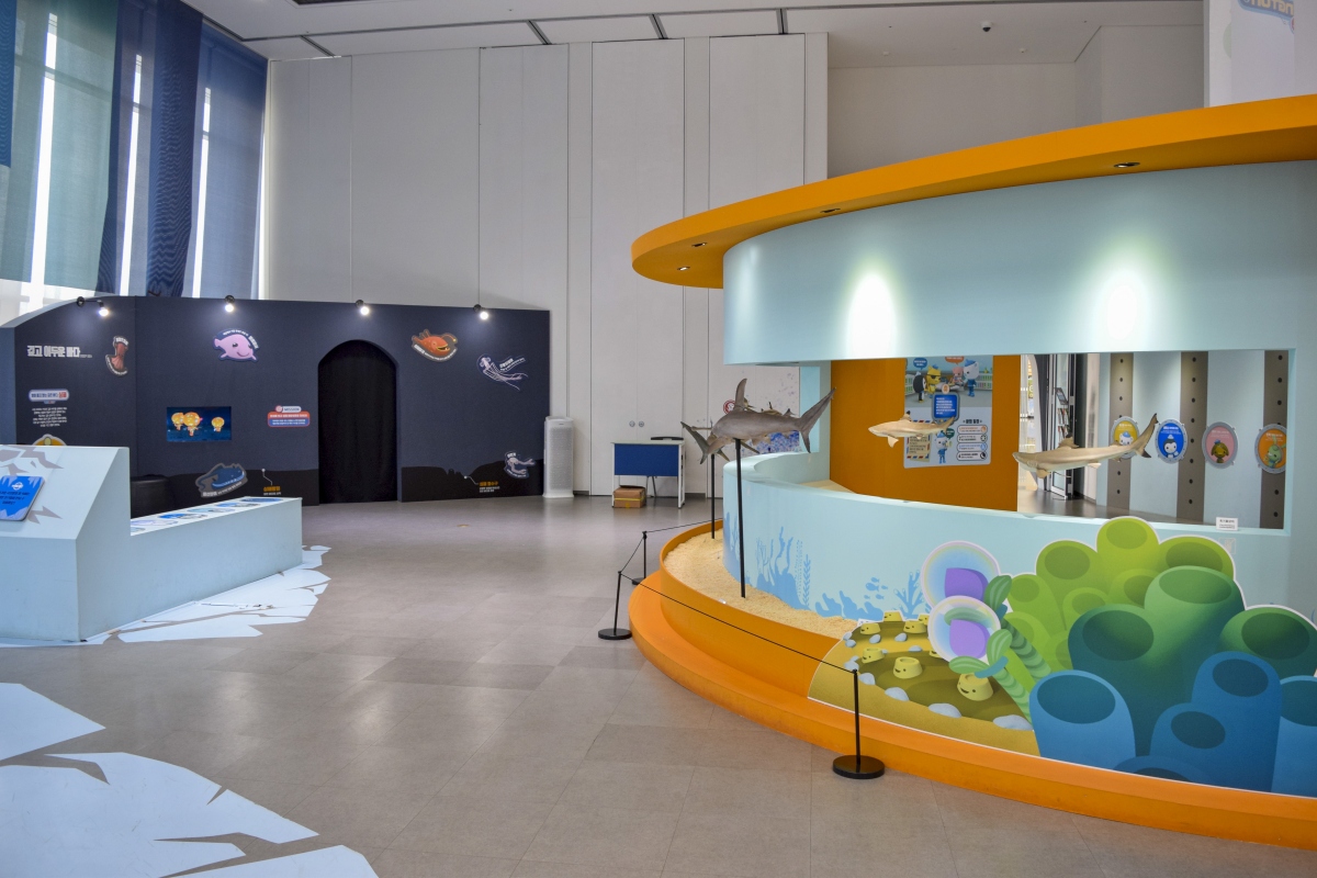 1층에는 해양생물과 관련된 흥미롭고 다양한 기획전시를 관람할 수 있다.