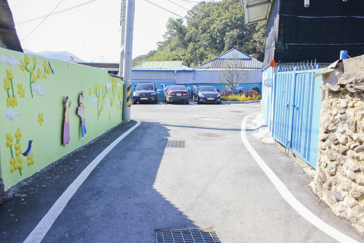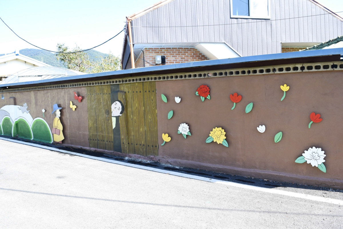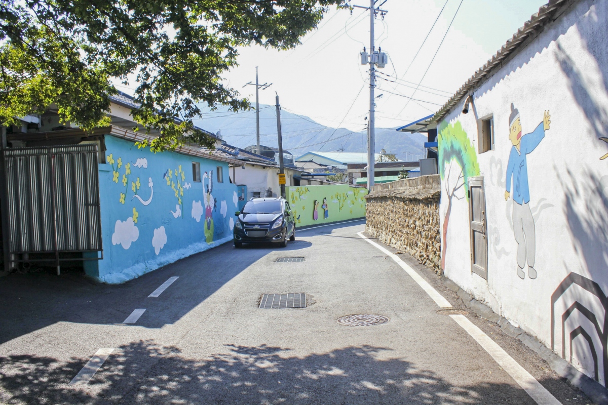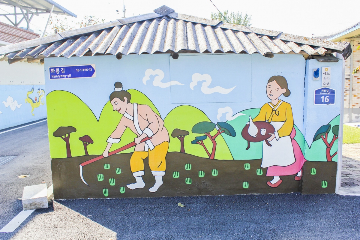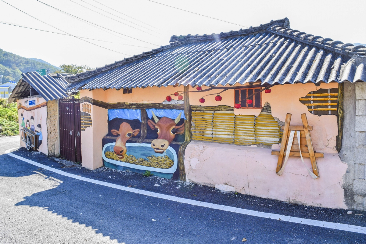 이 작은 시골마을에 알록달록 고운 빛깔의 그림이 마을의 예쁜 이야기를 담아 벽화마을로 탄생해 사람들의 발길을 이끌고 있다.