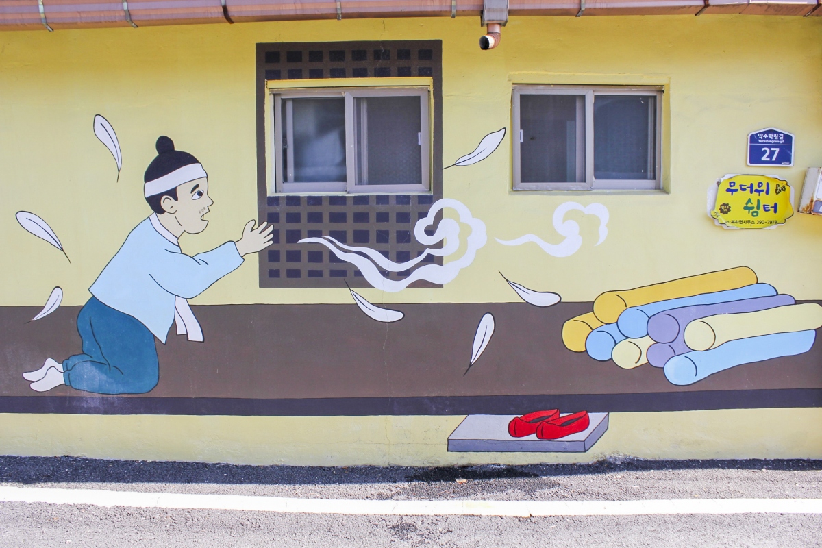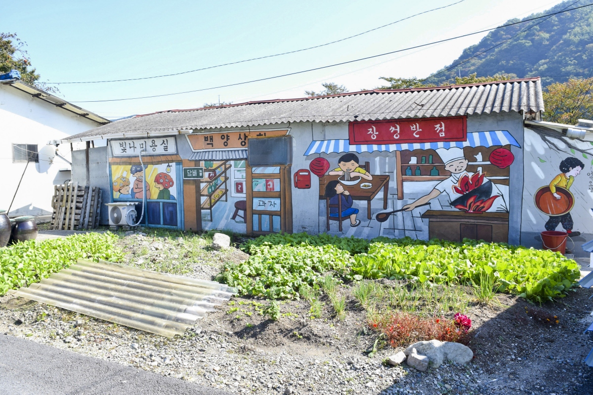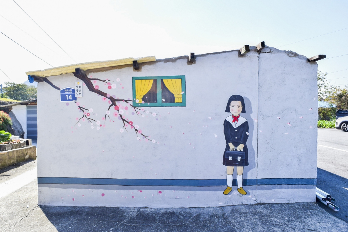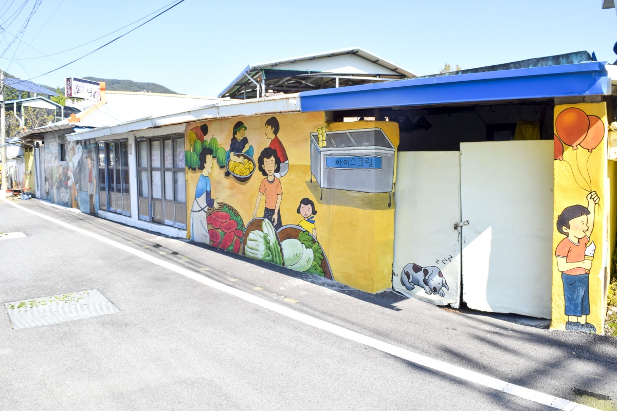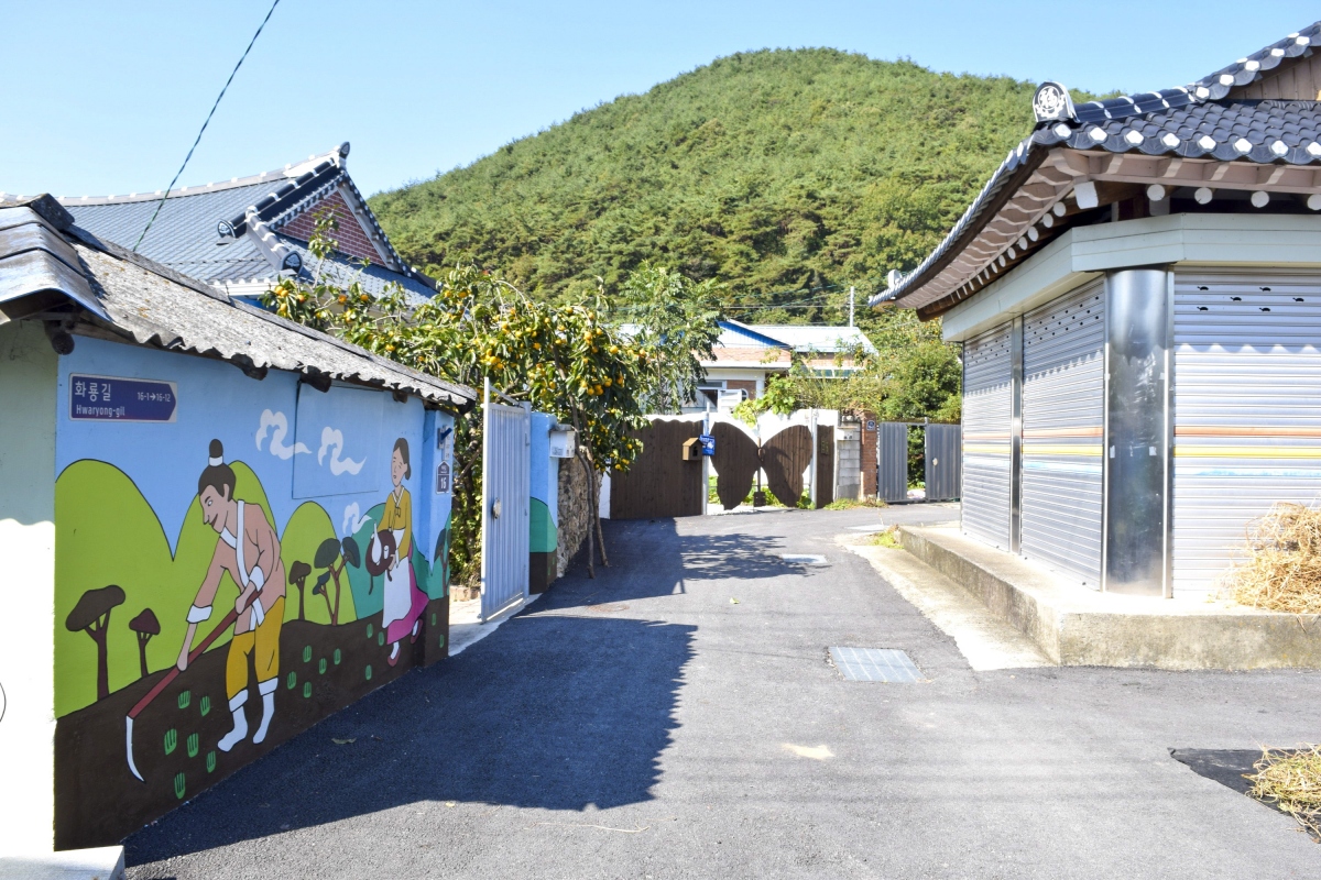 이 작은 시골마을에 알록달록 고운 빛깔의 그림이 마을의 예쁜 이야기를 담아 벽화마을로 탄생해 사람들의 발길을 이끌고 있다.