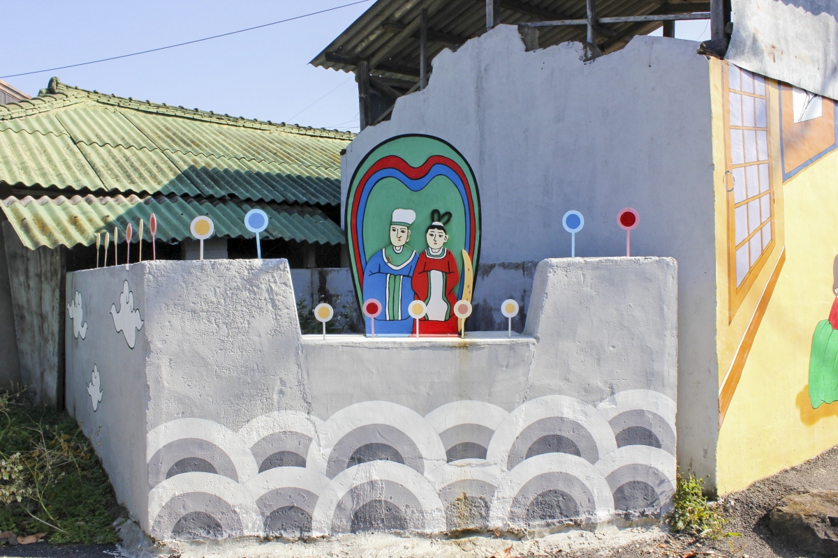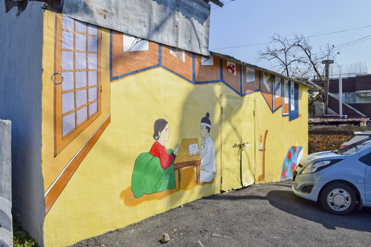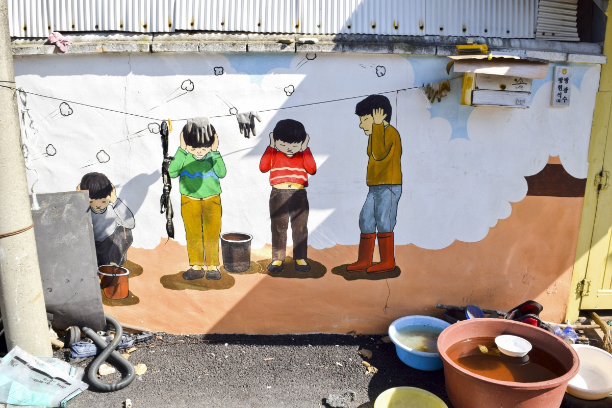마을 곳곳의 담벼락에는 다양한 그림들이 그려져 있다.