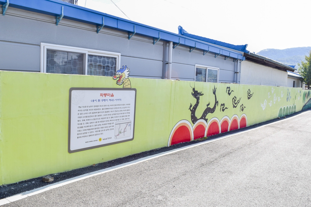 이 화룡마을에는 예로부터 전해져 내려오는 ‘용이 된 구렁이처녀’라는 이야기가 벽화로 그려져 있다.