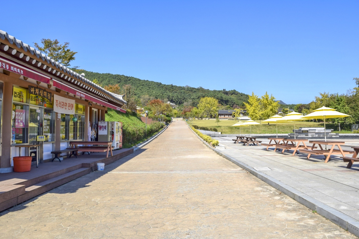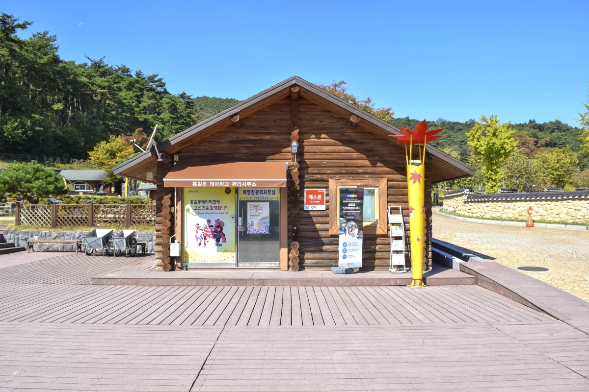 홍길동테마파크 입구에 무료로 이용할 수 있는 넓은 주차장이 마련되어 있어 편하게 차를 세울 수 있다.