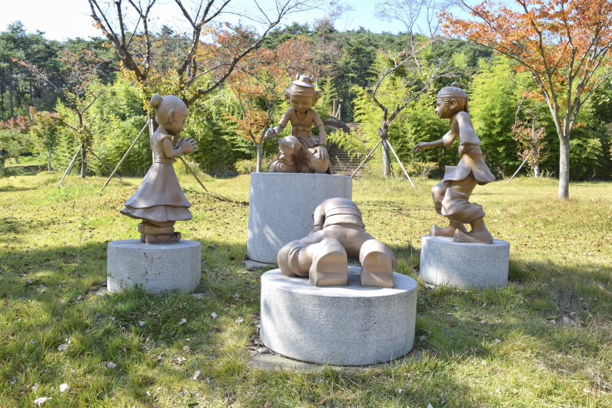 잘 닦인 산책로 사이사이 조형물이 설치되어 있어 보는 재미가 있고, 큰 나무가 그늘을 만들어 주는 벤치도 군데군데 놓여 있어 걷다 지치면 잠시 쉬어 가도 좋다.