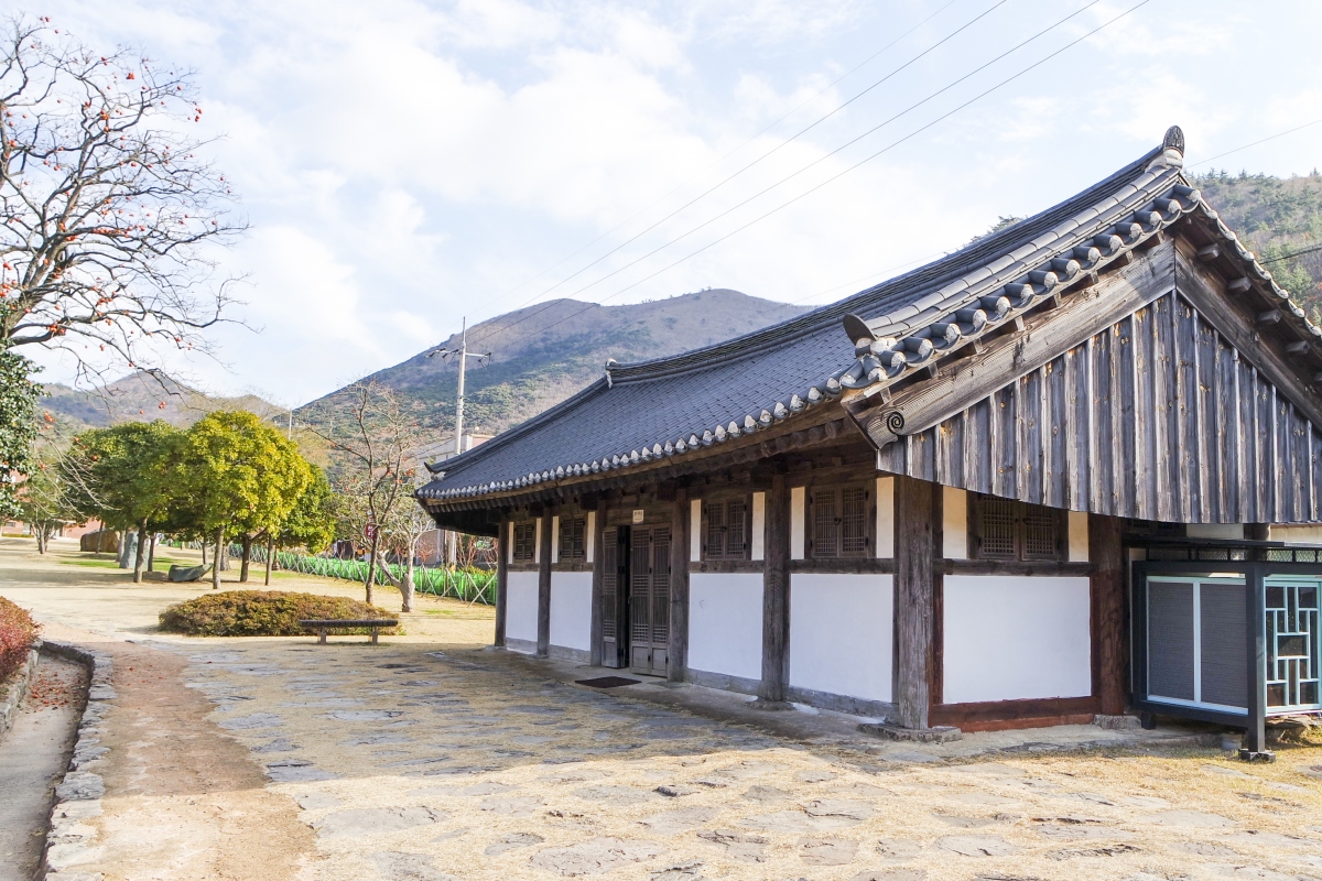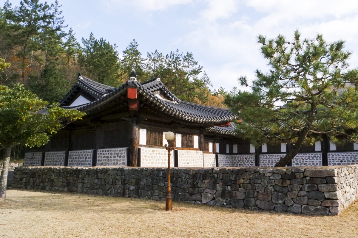 굴도리집으로 장대석 구조며 외벌대기단을 형성하고 그 위에 초석을 올려 네모기둥을 세웠다.