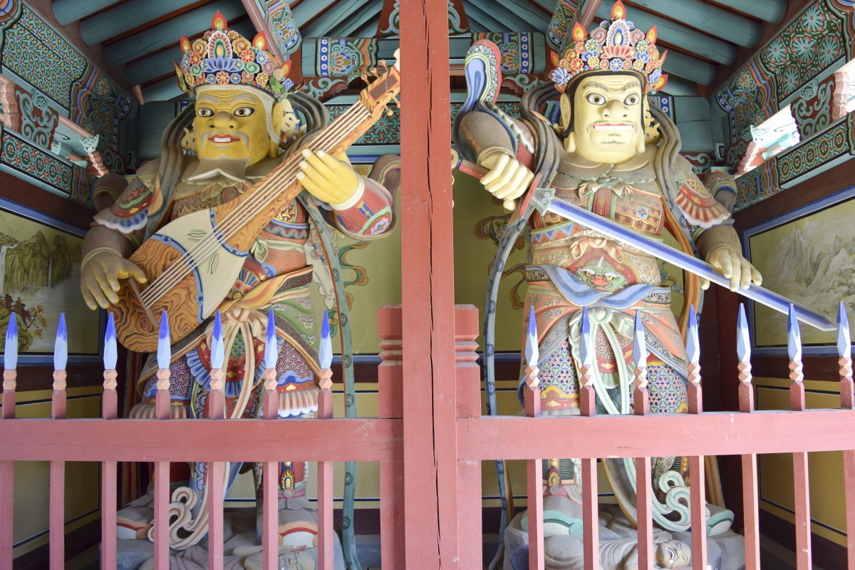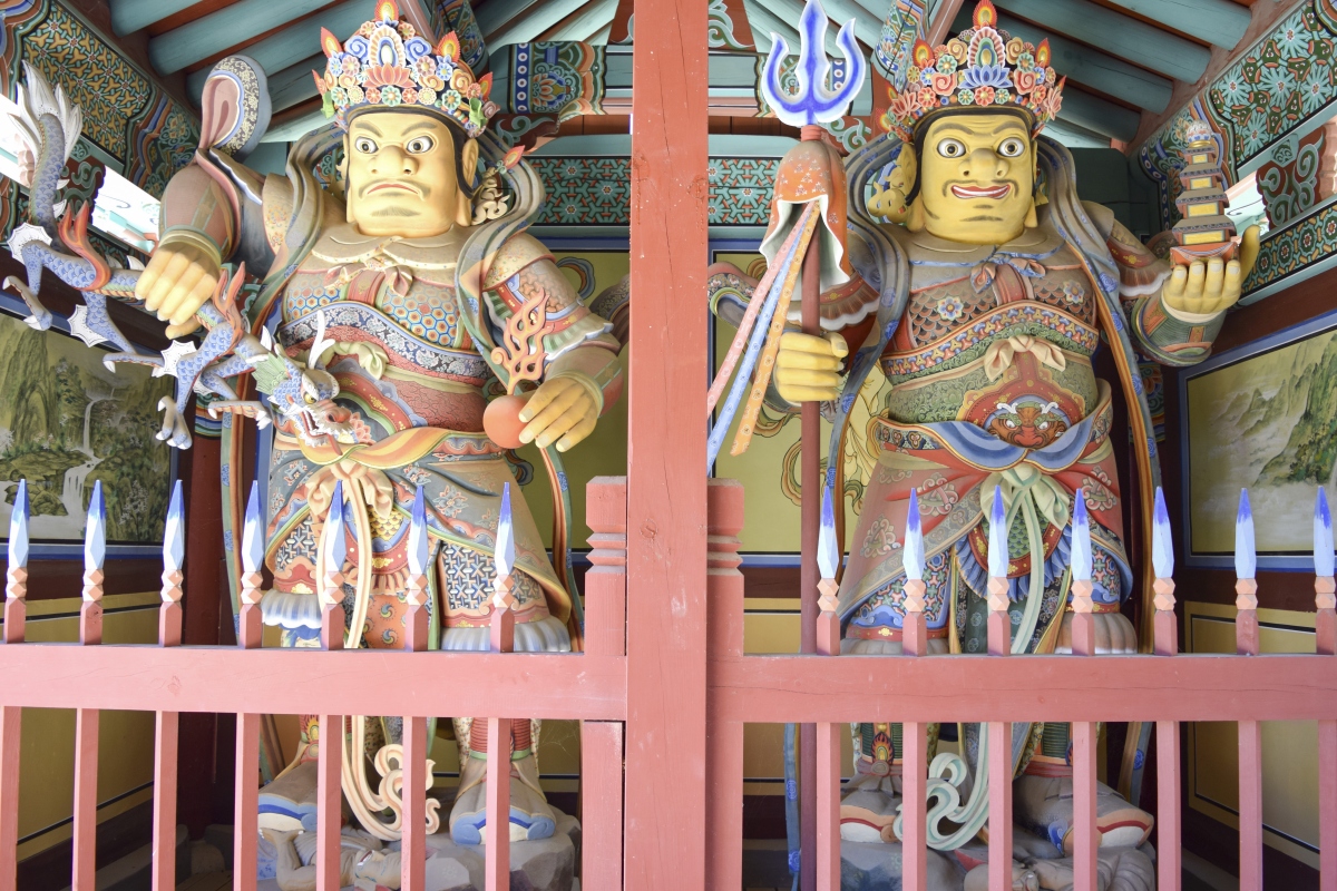 천왕문으로 들어가면 사천왕들이 서 있다. 사천왕은 불법뿐 아니라, 불법에 귀의하는 사람들을 수호하는 호법신으로 호세사천왕이라고도 한다.