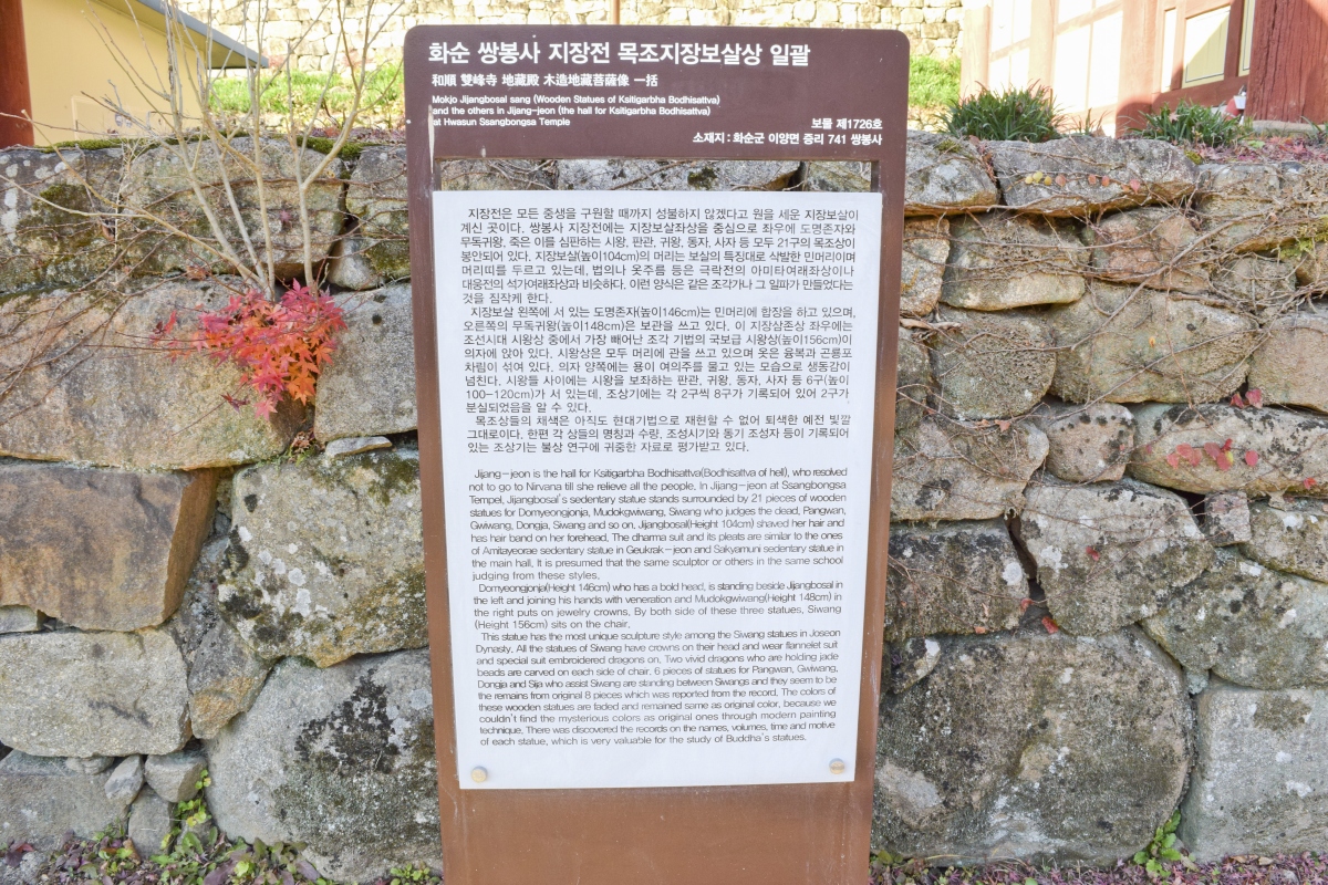 승탑을 보고 내려오면 첫 번째 전각이 지장전인데 내부에 보물 제1726호로 지정된 목조지장보살상이 있다.