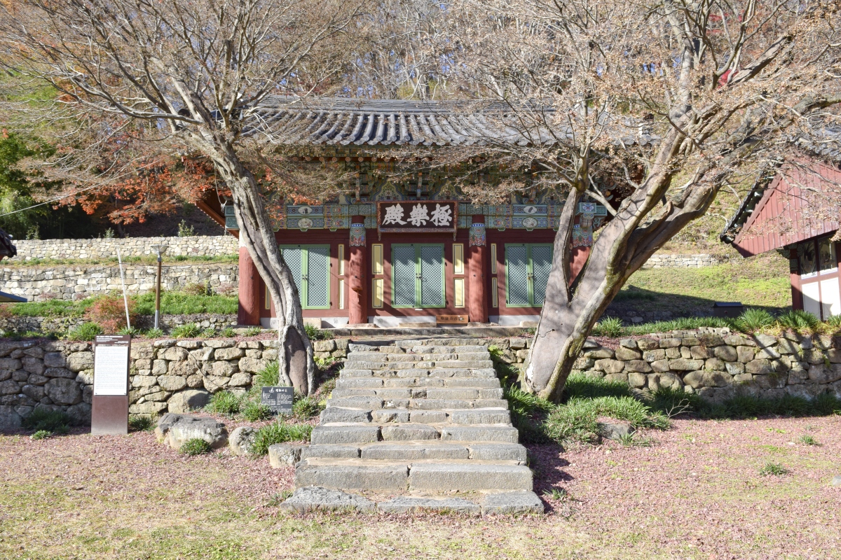 지장전 옆으로 한기단 위에 극락전이 있다.