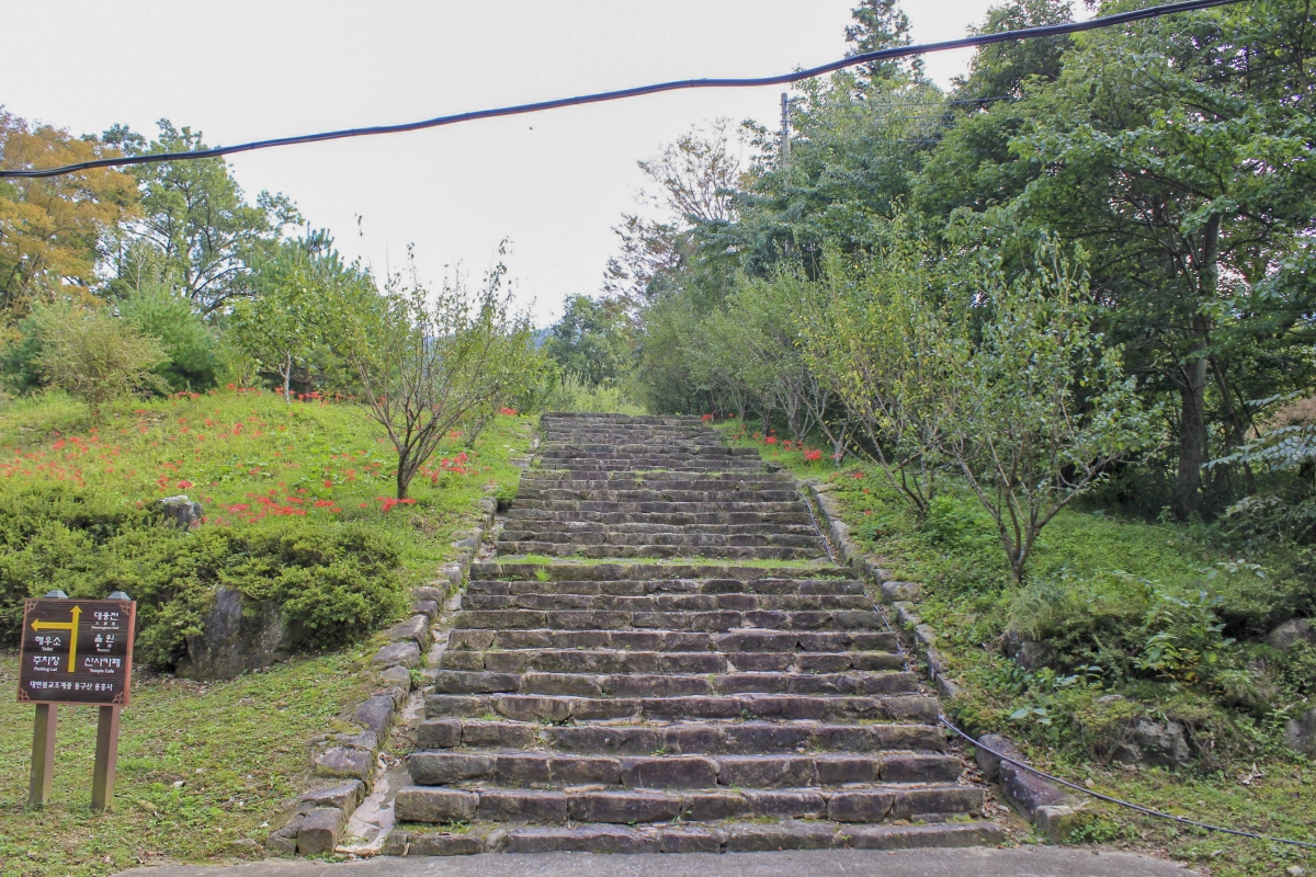 계곡을 지나 산책로를 따라 올라가다 보면 계단을 만나게 되는데 이 계단을 타고 오르다 보면 용흥사가 나타난다.