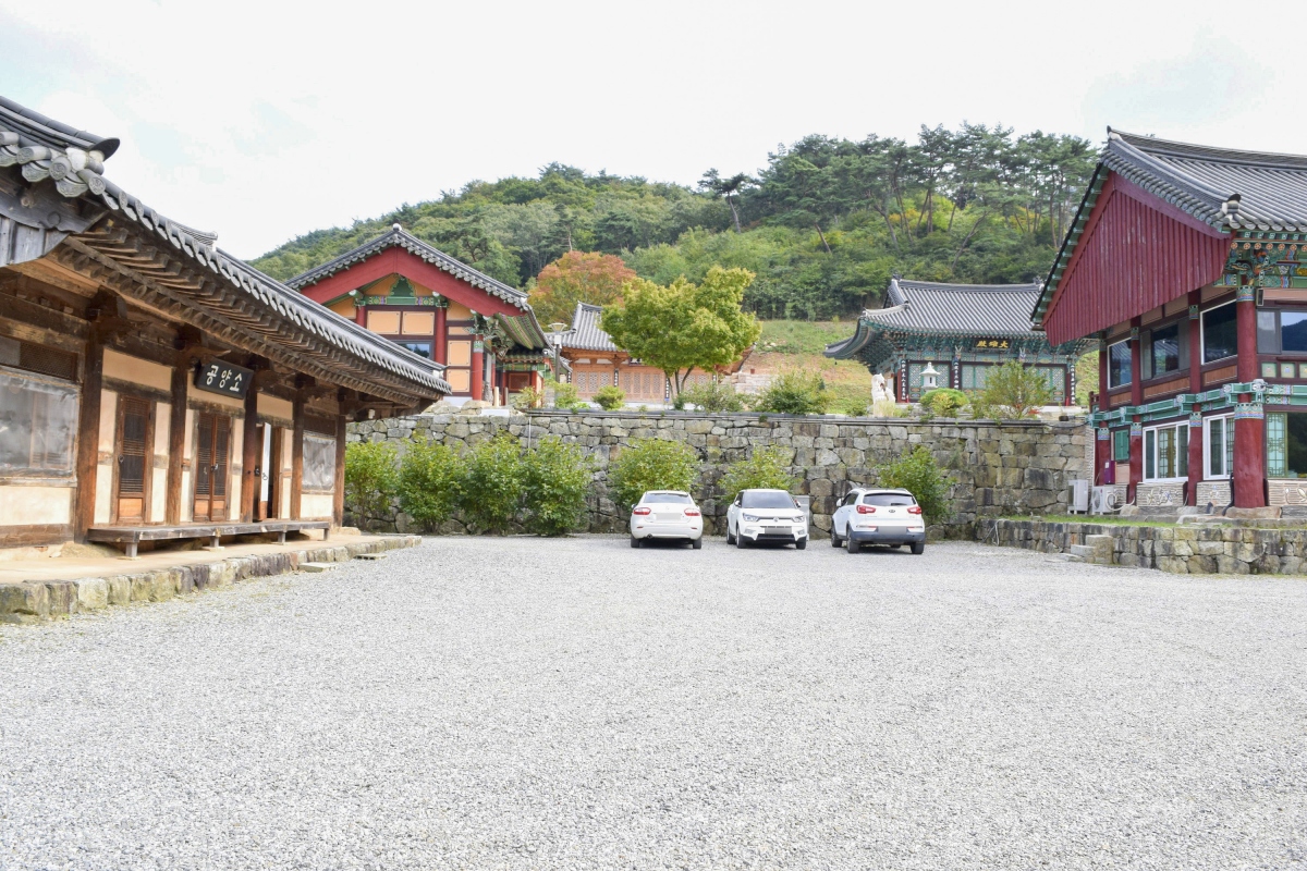 용흥사 입구에 주차장이 마련되어 있어 편하게 차를 세울 수 있다.