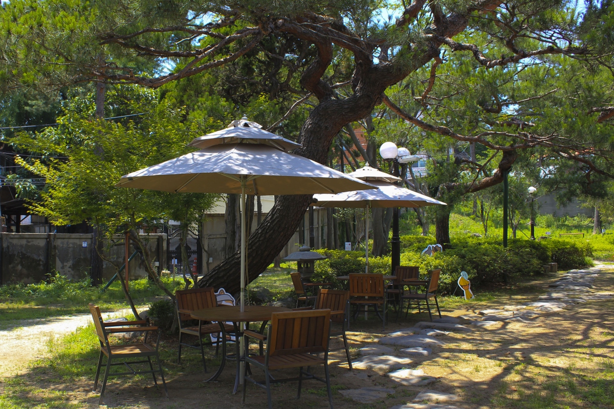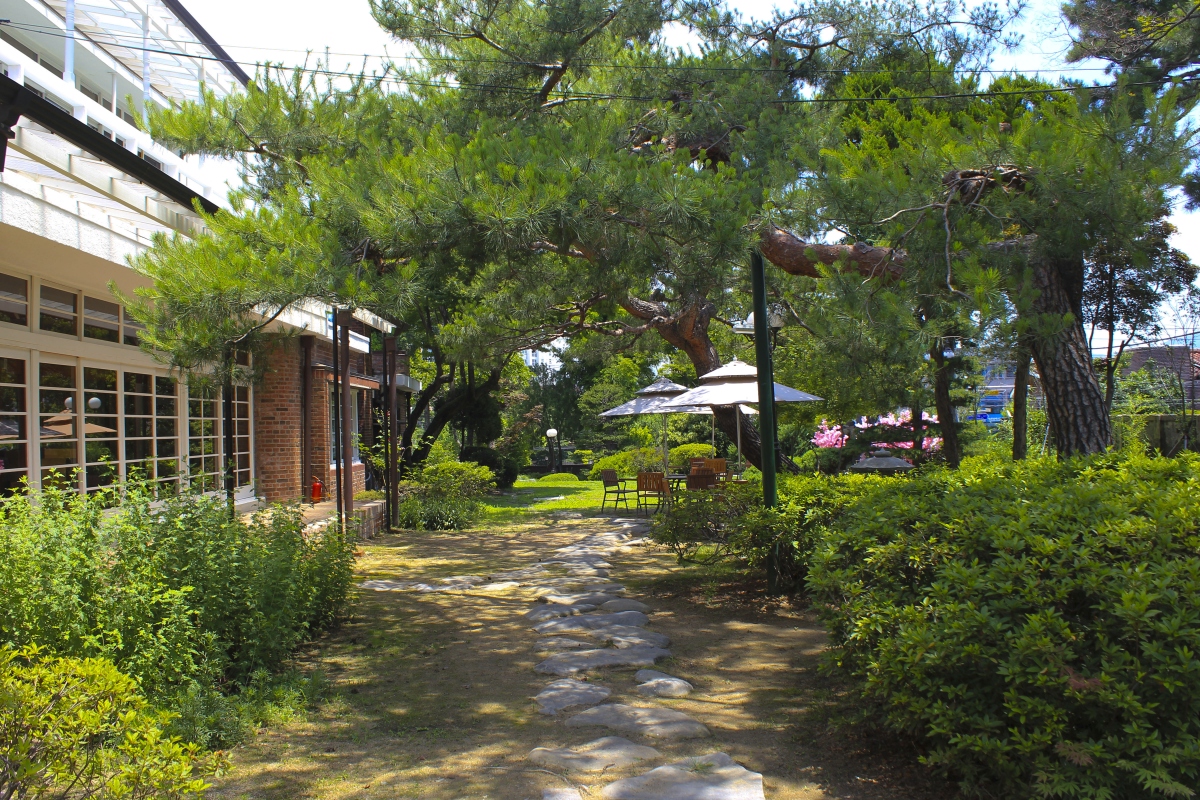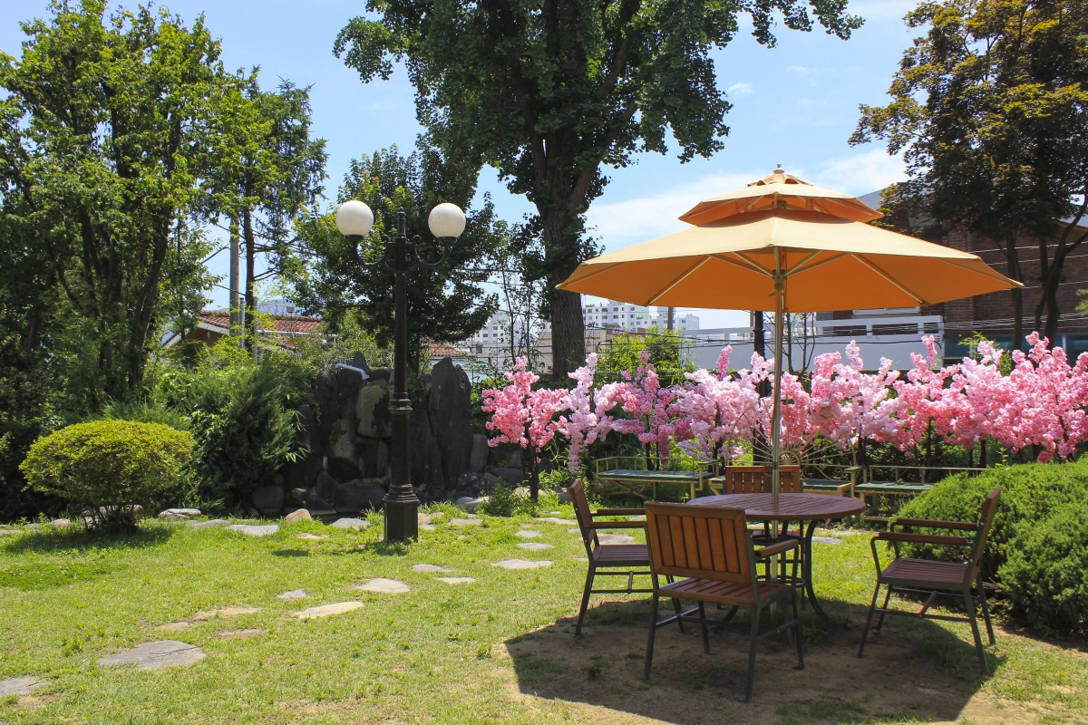 푸르른 잔디가 깔린 정원은 마치 도심 외곽의 한적한 카페에 온 듯한 착각을 불러 일으킨다.
