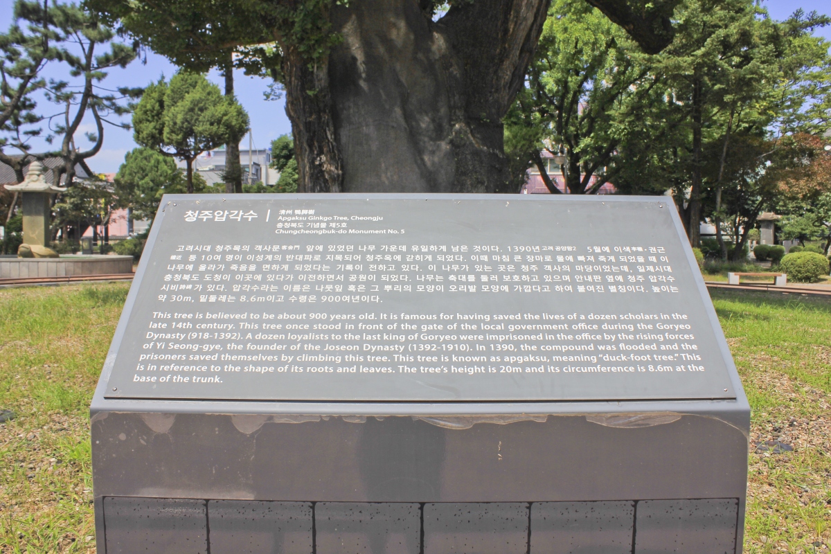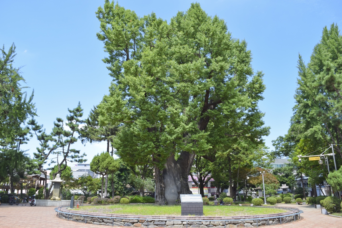 청주 중앙공원 충청병마절도사영문 앞에 서 있는 은행나무는 청주읍성의 장구한 역사를 말해준다.