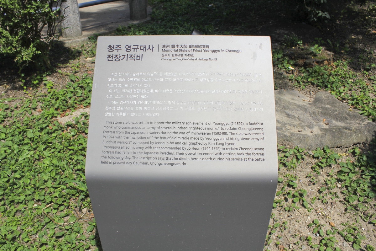철당간과 동헌을 이웃하고 있는 이 공원에는 임진왜란 당시 청주성 탈환의 주역이던 조헌, 영규, 박춘무의 3대 기적비와