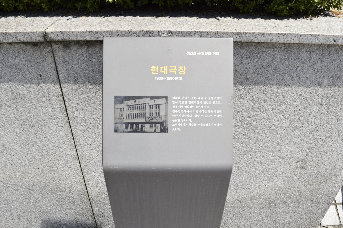 옛 청주의 번화가 흔적이 남겨진 성안길 근대 문화 거리는 옛 풍경과 추억을 회상할 수 있는 모습이 곳곳에 배어져 있다.